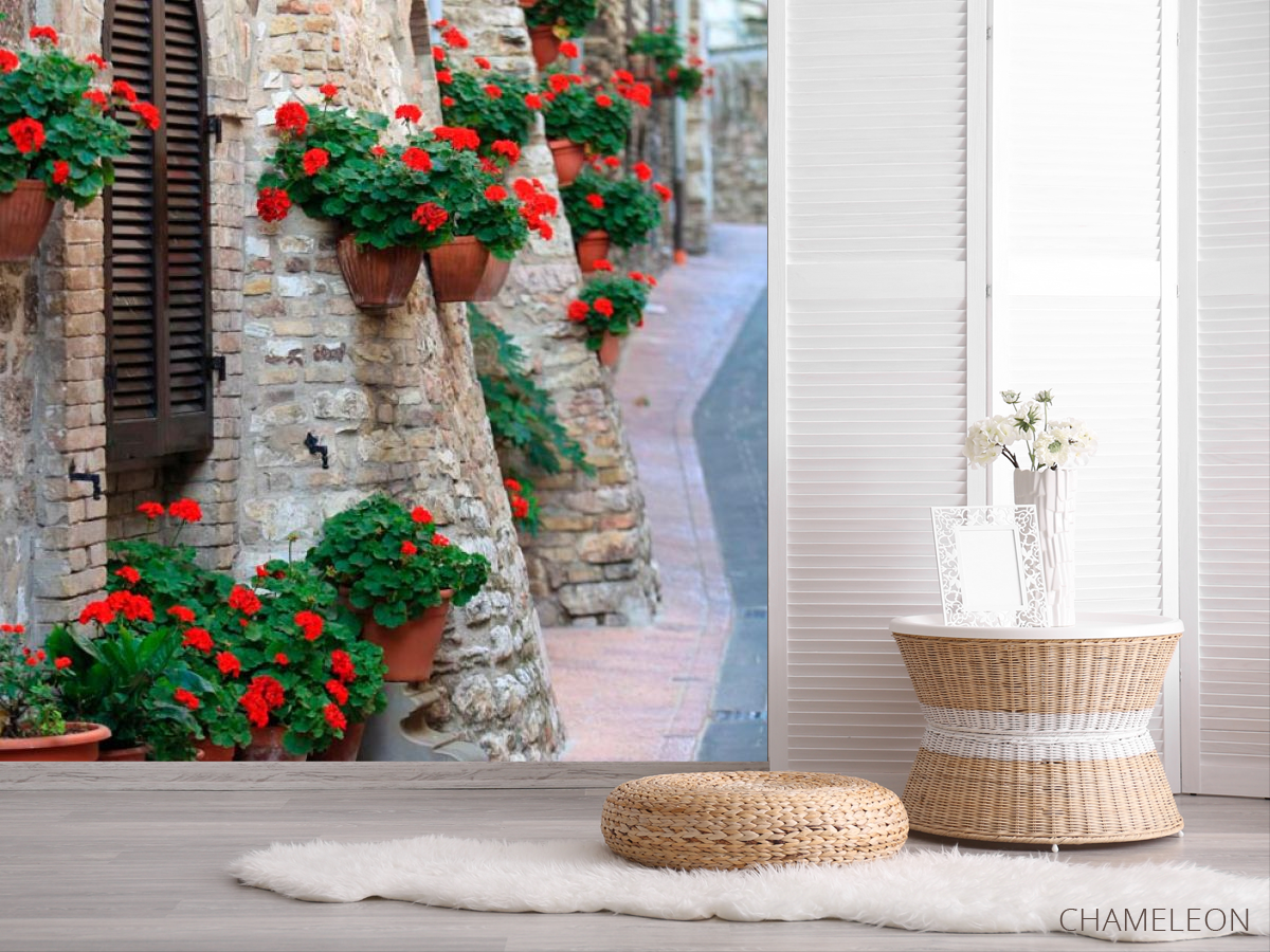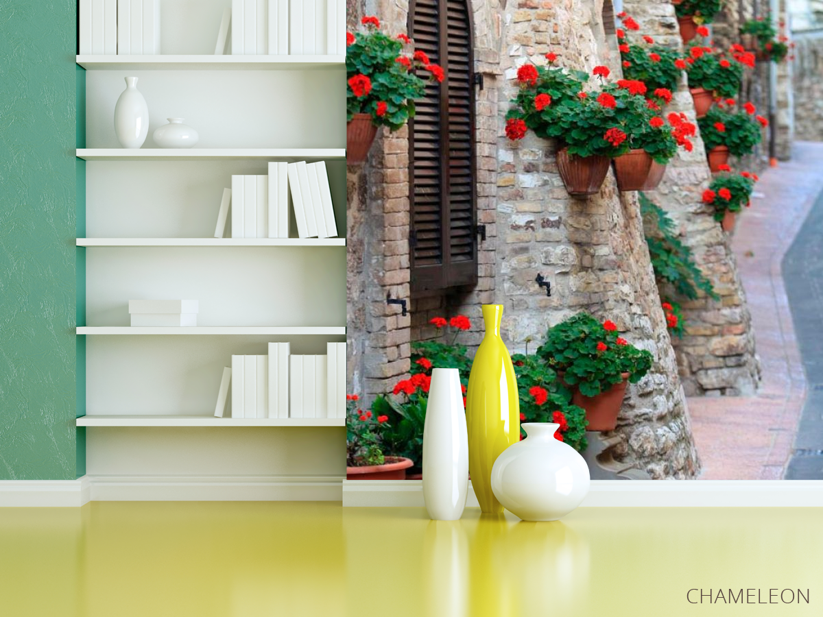 Фотошпалери Квіти на стінці будинку